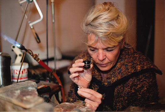 Imkje Felsbourg dispose d'un atelier et d'une boutique de bijoux modernes depuis 1985. Elle vend ses propres dessins en or et argent.